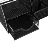 Denne praktiske organizer hjælper dig med at organisere alle dine kontorartikler og holde arbejdsfladen ryddelig. Den robuste konstruktion af metal (jern) med netdesign er holdbar og langtidsholdbar, så den tåler daglig brug både hjemme og på arbejde. Takket være de kompakte mål passer den på ethvert bord og er alligevel overraskende rummelig.