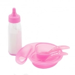 Dukkesæt indeholder alt, hvad du har brug for til fodring: en mælkeflaske og service. Fantastisk sjov for børn fra 3 år!