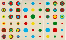 - 4× træbase; 5× grøn cylinder; 5× rød cylinder; 5× blå cylinder; 5× gul cylinder