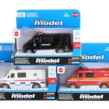 Opdag realistiske metal-redningsbiler til små helte. Modellerne måler ca. 9,5 × 4 cm, har robust metaludførelse, friløb for nem kørsel og er ideelle til børn fra 3 år.