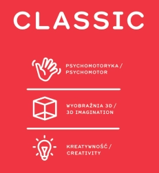 Den klassiske form på klodserne er lavet af et sikkert gummimateriale. De klassiske blokke er robuste og enkle og gør det muligt at bygge kompakte og holdbare konstruktioner. Fem størrelser af klodser giver et bredt udvalg af muligheder for at bygge og udvikle barnets fantasi.