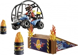 Giv fuld gas med PLAYMOBILs stuntshow! Se stuntkøreren drøne afsted på ATV’en, suse gennem flammerampen og lave et åndeløst baglæns-salto-spring. Sættet er en perfekt introduktion til Stunt Show-universet og indbyder til kreativ historiefortælling.