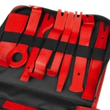 Alt, hvad du behøver til afmontering af interiøret: 12 plast-afmonteringsværktøjer, clips-tænger, 2 clip-aftrækkere (22,5 og 31 cm), 8 nøgler til radio, 11 pin-nøgler og 4 kroge. Overskueligt opbevaret i et slidstærkt etui med lynlås.