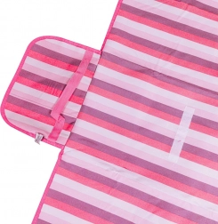 Den lyse farve sikrer, at du nemt finder dit afslapningsområde, og takket være det praktiske håndtag kan du nemt bære det fra bilen til stranden. Tæppet er desuden sammenklappeligt og fylder ikke meget, når det ikke er i brug.