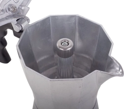 Den elektriske kaffemaskine imødekommer alle kaffeelskerens behov. Den er lavet af holdbart aluminium, hvilket sikrer lethed og lang levetid. Det ergonomiske plasthåndtag forhindrer forbrændinger.