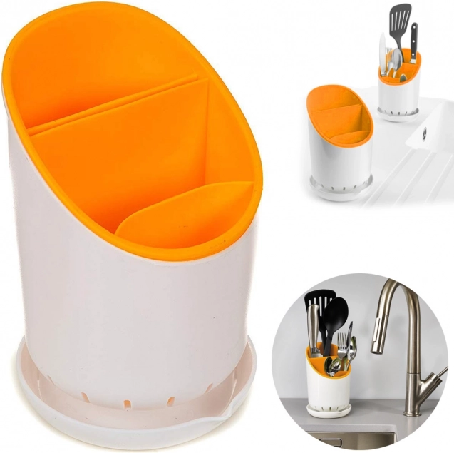 Den plastiske bestikholder er en ideel hjælper i dit køkken. Den har et attraktivt design med markante orange detaljer, som smukt komplementerer dit køkken.