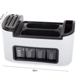 Den nederste del af organisatoren indeholder fire rummelige skuffer af æstetisk gennemsigtig plast, ideelle til opbevaring af kaffe, te eller sukker. Hver del af organisatoren er let aftagelig for grundig rengøring, og basen fungerer som en drypbakke for at sikre tørhed.