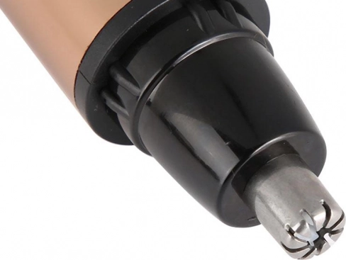 Roterende rustfrie stålblade og et afrundet hoved muliggør hurtig og sikker fjernelse af hår i næse og ører uden at trække.