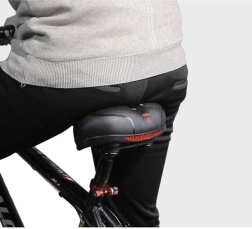 Der reflektierende Streifen erhöht die Sichtbarkeit nach Einbruch der Dunkelheit, und der mitgelieferte wasserfeste Bezug hält den Sattel bei Regen trocken.