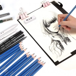 Dieses universelle 32-teilige Zeichen-Set kombiniert verschiedene Bleistifthärten (B, HB, H), Kohlen in Holz und als Stäbchen sowie Graphitstäbe, um feine Linien, tiefe Schatten und sanfte Tonwertverläufe zu erzielen. Alles ist übersichtlich in einem robusten Reißverschlussetui mit Schlaufe untergebracht, das die Werkzeuge schützt und den Transport erleichtert.