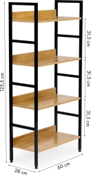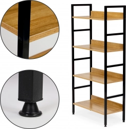 Das Loft-Regal MODERNHOME verbindet modernes Design mit praktischem Stauraum. Die Holzböden mit den Maßen 60 × 28 cm fassen Bücher, Deko, Pflanzen und Badaccessoires. Die Metallkonstruktion gewährleistet Stabilität und Langlebigkeit, während Schutzkappen und höhenverstellbare Füße den Boden schützen und Unebenheiten ausgleichen.
