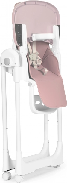 Die robuste Metallkonstruktion klappt mit einem Knopfdruck zusammen, Räder mit Gummilauffläche und Feststeller schützen den Boden und erleichtern das Verschieben. Dank der kompakten Maße im zusammengeklappten Zustand verstauen Sie den Hochstuhl bequem, wenn Sie ihn gerade nicht benötigen.
