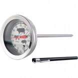 Das Thermometer verfügt über Symbole für optimale Temperaturen verschiedener Fleischsorten und ein leicht ablesbares Zifferblatt.