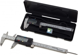 Zuverlässiger digitaler Messschieber für Werkstatt und Haushalt mit präziser Messung auf Hundertstel Millimeter und einem klar ablesbaren LCD-Display. Das Edelstahlgehäuse gewährleistet Robustheit und lange Lebensdauer, der sanfte Lauf der Schiene erleichtert präzises Justieren und sofortiges Ablesen. Die Umschaltung der Einheiten mm/inch ermöglicht eine schnelle Anpassung an die Messanforderungen.