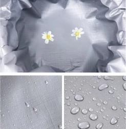Die LDPE-Beschichtung sorgt für vollständige Wasserdichtheit und Schutz vor Regen, Schnee und Feuchtigkeit. Beidseitige silber‑graue Ausführung für höhere Vielseitigkeit.