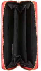 Große Damen-Geldbörse in Korallenfarbe. Innen befinden sich 8 kleinere Fächer für Treuekarten, 2 größere Fächer, 3 getrennte Fächer für Bargeld und 1 verschließbares Münzfach mit Reißverschluss.