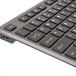 Die niedrige Bauhöhe spart Platz auf dem Schreibtisch und erhöht den Schreibkomfort. Das elegante Design passt in jedes moderne Büro.