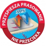 Die 100% metallisierte Schicht reflektiert Dampf und Wärme zurück in den Stoff, was das Bügeln beschleunigt und die Kondenswasserbildung unter dem Brett verhindert – für eine saubere, trockene Oberfläche.
