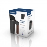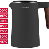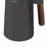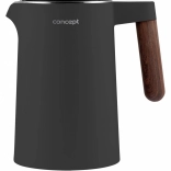 Der Wasserkocher Concept RK3305 findet in jedem Haushalt seinen Platz. Sein attraktives Design wird durch das matt dunkelgraue Gehäuse auf einem minimalistischen Sockel unterstrichen, ergänzt durch einen eleganten Griff in Holzoptik. Mit einem Volumen von 1,5 Litern bereiten Sie bequem bis zu 6 Tassen Ihres Lieblingsheißgetränks zu.