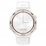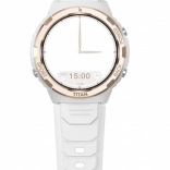 Die Titan Valkiria Uhr mit ihrem weißen Armband und goldenen Details schafft eine perfekte Kombination für jede Frau.