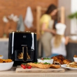 Die Heißluftzirkulation bereitet Speisen schnell, gleichmäßig und mit minimalem Öl zu – innen saftig, außen knusprig.