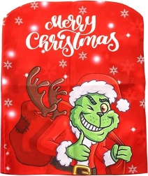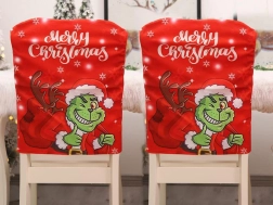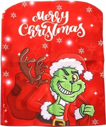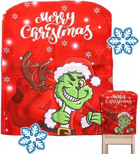 Der Weihnachtsstuhlbezug ist aus hochwertigem Polyester gefertigt, das widerstandsfähig ist und sich leicht reinigen lässt. Der Bezug trägt eine Abbildung von Grinch mit dem Schriftzug "Frohe Weihnachten" und ist für die einfache Befestigung an den meisten Standardstuhllehnen ausgelegt.