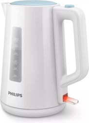 Der elektrische Wasserkocher von Philips ermöglicht es Ihnen, Heißgetränke einfach und schnell zuzubereiten. Er ist mit einem versteckten Edelstahlheizelement ausgestattet, das schnelles Kochen und leichtes Reinigen ermöglicht. Dank des Sicherheitssystems schaltet sich der Wasserkocher automatisch ab, wenn er leer ist, und der beleuchtete Indikator zeigt an, wenn der Wasserkocher eingeschaltet ist.