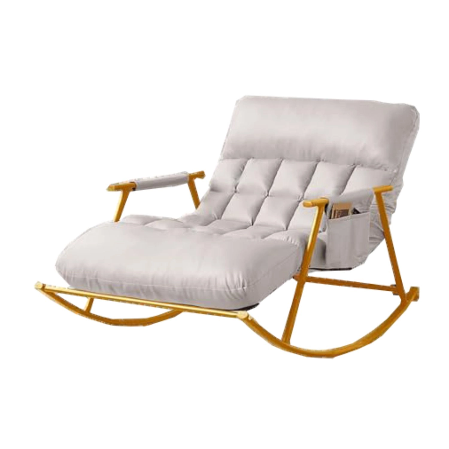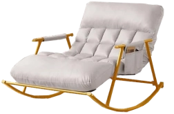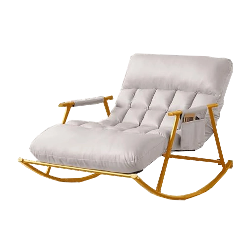 Gönnen Sie sich ruhiges Schaukeln und geteilte Wohlfühlmomente. Der doppelte Schaukelstuhl in elegantem Weiß bietet weiche, gesteppte Kissen mit PP-Cotton-Füllung, die Rücken und Beine angenehm stützen. Die robuste Stahlkonstruktion mit goldener Oberfläche gewährleistet sanftes und sicheres Schaukeln bis zu 200 kg.