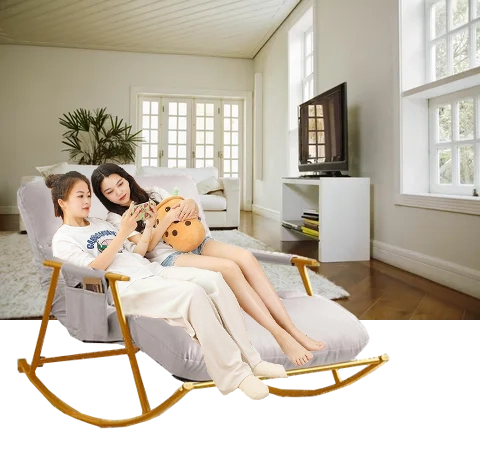 Genießen Sie maximale Entspannung zu zweit. Dieser großzügige doppelte Schaukelstuhl kombiniert modernes Design, eine stabile goldene Metallbasis und eine außergewöhnlich bequeme Polsterung. Dank breiter Sitzfläche, ergonomischer Kissen, verstellbarer Rückenlehne und Fußstütze sowie praktischer Seitentasche ist er ideal fürs Wohnzimmer, die Terrasse und den Wintergarten.