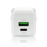 Das Ladegerät bietet schnelles Aufladen über duale USB-A- und USB-C-Anschlüsse.