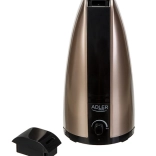 Luftbefeuchter mit modernem, goldbraunem Design und Beleuchtung, fügt sich leicht in jedes Interieur ein.