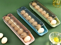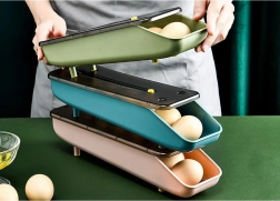 Keine wackeligen Schachteln und zerbrochenen Eier mehr. Dieser smarte Eier-Vorratsbehälter mit Schiebedeckel hält die Eier sicher an Ort und Stelle, und dank Gefälle rutscht nach der Entnahme eines Eis das nächste automatisch nach vorne. Der integrierte Datums-Schieber hilft Ihnen, den Einlege- oder Verbrauchstag zu markieren, sodass Sie die Frische immer im Blick haben.