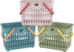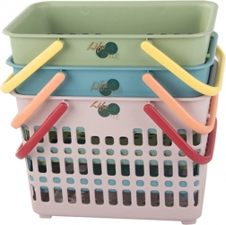 Praktischer Korb mit stabiler Konstruktion und klappbaren Griffen – perfekt für kleine Einkäufe, den Transport von Lebensmitteln, Ausflüge und die Aufbewahrung von Kleinigkeiten im Haushalt. Die offene Gitterstruktur gewährleistet eine Luftzirkulation und einen schnellen Überblick über den Inhalt, der robuste Kunststoff garantiert eine lange Lebensdauer.