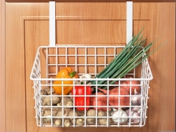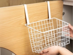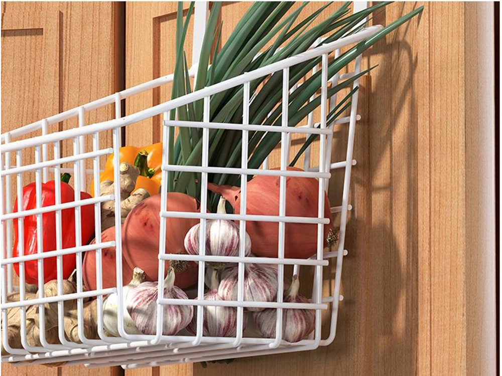 Den Korb einfach mithilfe von zwei Haken über die Oberkante der Tür oder des Regals hängen. Sofortige Erweiterung des Stauraums ohne Beschädigung der Möbel.