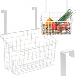 Praktischer hängender Korb aus robustem Metall schafft zusätzlichen Stauraum ohne Bohren. Einfach über die Oberkante der Schranktür oder eines Regals hängen und sofort übersichtliche und belüftete Aufbewahrung für Lebensmittel, Reinigungsmittel oder Zubehör erhalten. Stabile Konstruktion, offenes Drahtdesign für Luftzirkulation und einfache Montage machen den Korb zum idealen Helfer für Küche, Speisekammer und Bad.