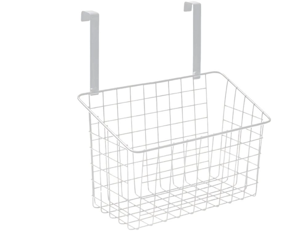 Dieser hängende Korb aus lackiertem Metall nutzt den Platz an der Innen- wie Außenseite von Schranktüren oder auf Regalen effektiv. In wenigen Augenblicken montiert dank zweier Haken – ganz ohne Bohren und Werkzeug. Das offene Gitter gewährleistet hervorragende Sichtbarkeit und Belüftung und ist daher ideal für Gemüse, Küchenpapier oder Flaschen mit Reinigungsmitteln.