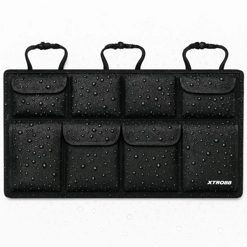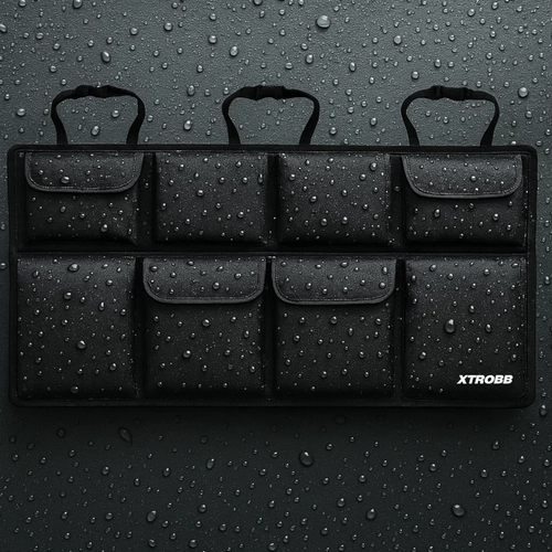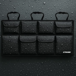 Genießen Sie eine einfache und problemlose Montage mit dem Organizer für Autositze XTROBB. Einfach an den Kopfstützen befestigen und mit Klettverschluss am Sitz fixieren - das alles in nur 5 Sekunden. Universelle Gurte sorgen dafür, dass er perfekt in die meisten Pkw, SUV und Kombis passt. Zusammengefaltet ist er kompakt, leicht und kann in die Seitentasche des Kofferraums oder Handschuhfachs gesteckt werden. Dank des wasserdichten Materials ist der Inhalt vor Feuchtigkeit und Verschmutzung geschützt, selbst wenn Wasser verschüttet wird.