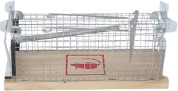 Diese Metallfalle ist für sicheres und effektives Einfangen von kleinen Schädlingen konzipiert, ohne den Einsatz von Giften. Sie besteht aus Stahldraht und einer Holzgrundlage, was Haltbarkeit und sichere Handhabung gewährleistet.