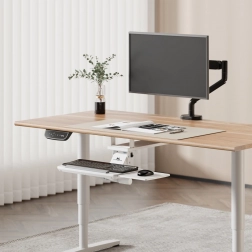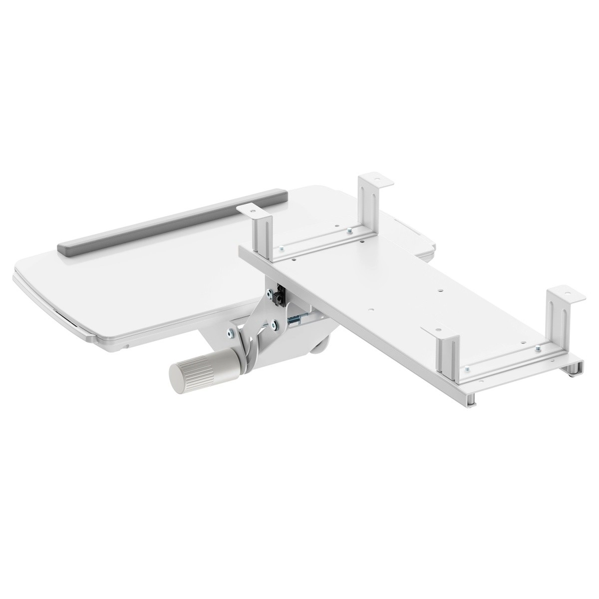 In Sachen Funktionalität ist der Halter mit einem ausziehbaren Mausfach ausgestattet, das sowohl nach rechts als auch nach links herausgezogen werden kann, ideal für Rechts- und Linkshänder. Außerdem ermöglicht er die Einstellung des Neigungswinkels der Tastatur um 15 Grad, was dem Benutzer erlaubt, den Arbeitswinkel anzupassen, wodurch die Spannung in Handgelenken und Unterarmen verringert wird.