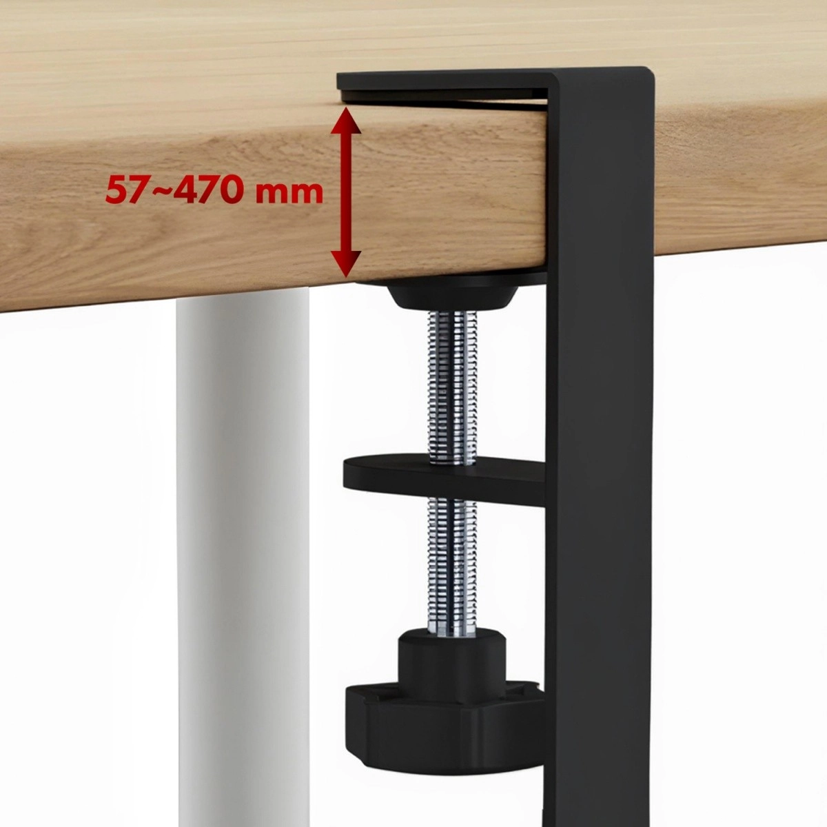 Die Montage ist schnell und sauber: Die Klemm-Befestigung an der Tischkante erfordert kein Bohren. Die robuste Vollmetallkonstruktion sorgt für Stabilität und Langlebigkeit und wirkt zugleich ästhetisch im Büro oder Homeoffice.