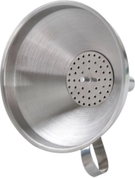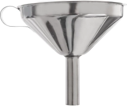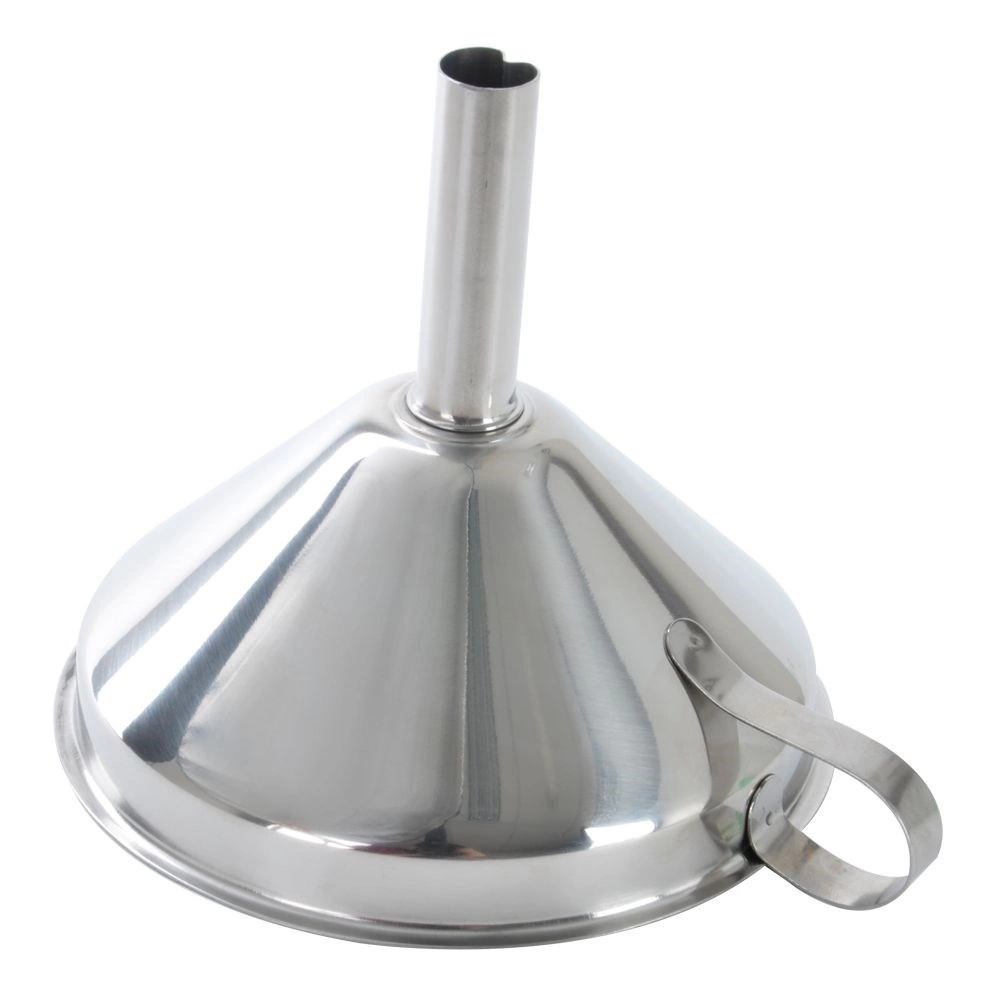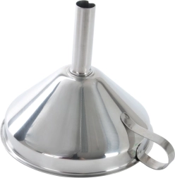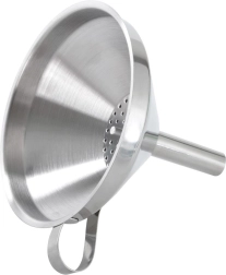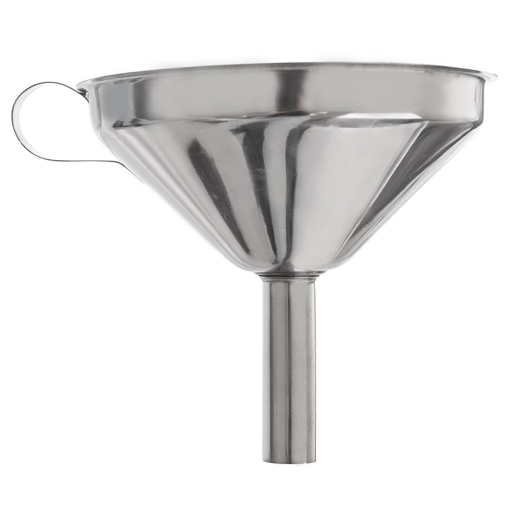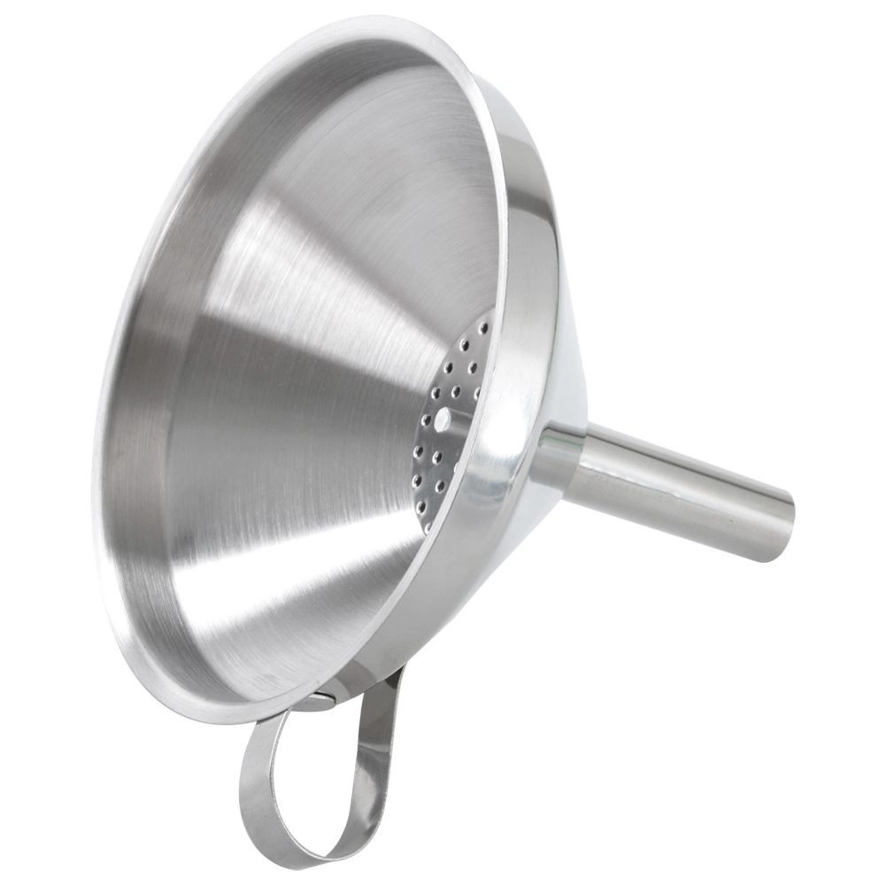 Machen Sie das Befüllen von Flaschen und Gläsern einfacher mit einem langlebigen Küchentrichter aus Edelstahl. Das herausnehmbare Sieb fängt zuverlässig Fruchtstücke oder feine Sedimente auf, sodass das Umfüllen sauber und präzise gelingt. Der ergonomische Griff gewährleistet einen stabilen Halt und ermöglicht das Aufhängen an der Küchenreling.