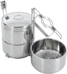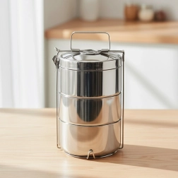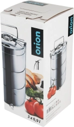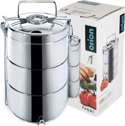 Dieser Thermo-Essensbehälter kombiniert die Langlebigkeit von Edelstahl mit einer funktionalen Anordnung in drei separate Behälter, die fest zu einer stabilen Einheit verspannt werden können. Jeder Behälter hat ein Volumen von 900 ml, sodass Sie Suppe, Hauptgericht und Beilage bequem getrennt aufbewahren können. Dank der doppelwandigen Konstruktion mit Vakuumisolierung bleiben Speisen länger in der gewünschten Temperatur.