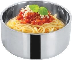 Die Behälter können als Servierschalen verwendet werden. Die glatte Edelstahloberfläche lässt sich leicht reinigen und ist spülmaschinengeeignet.