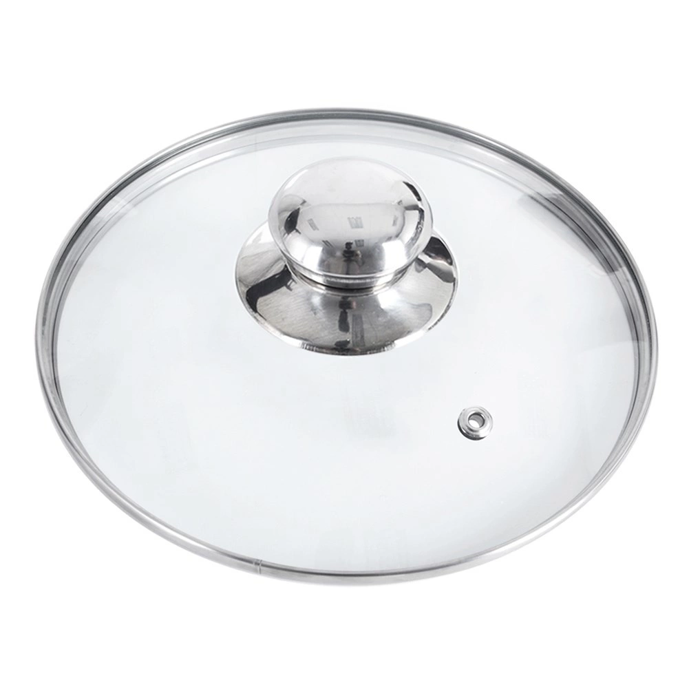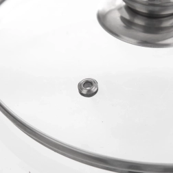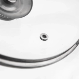 Der Glasdeckel 16 cm ist ein praktisches Zubehör für das tägliche Kochen. Das transparente, hitzebeständige Glas erleichtert die Kontrolle der Speisen, während das Dampfventil überschüssigen Dampf effektiv entweichen lässt. Der Edelstahlrand sorgt für Langlebigkeit und einen dichten Abschluss auf dem Kochgeschirr.