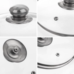 Der widerstandsfähige Edelstahlrand und Knopf bieten Stabilität, Langlebigkeit und ein dichtes Aufliegen auf dem Kochgeschirr.