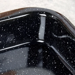 Hinweis: Emailliertes Kochgeschirr kann kleine herstellungsbedingte Unebenheiten aufweisen (z. B. leichte Erhebungen oder Asymmetrien im Dekor), die die Funktionalität oder die Qualität der Speisenzubereitung nicht beeinträchtigen und die traditionelle Herstellungsweise unterstreichen.