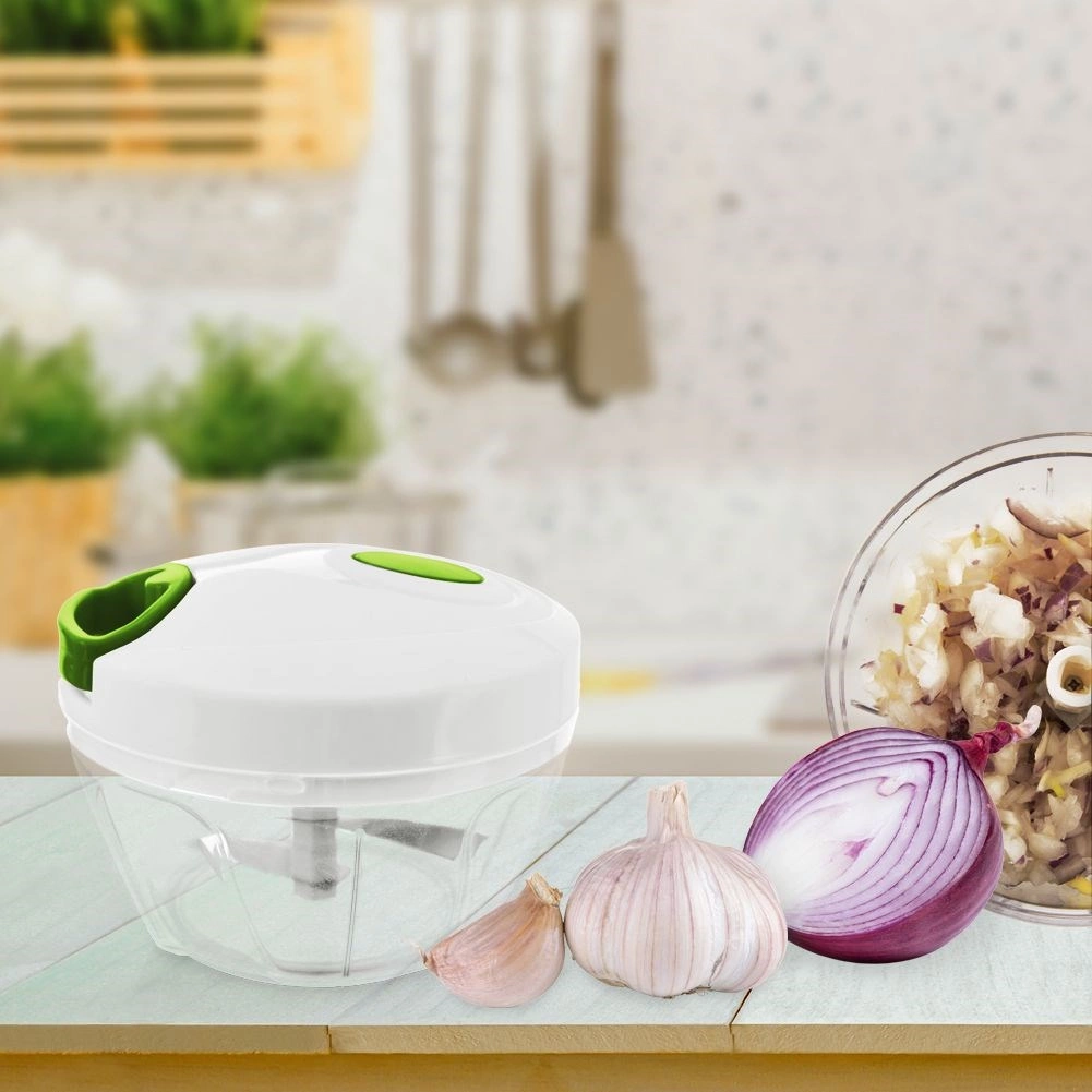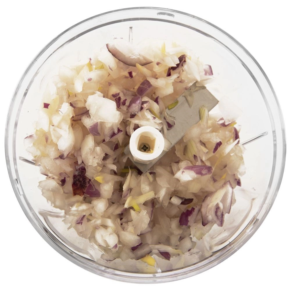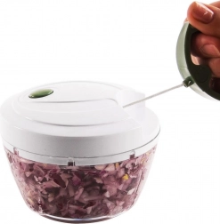Praktischer Küchenhelfer für den Alltag – manueller Zerkleinerer mit Zugmechanismus. Einfach am Deckelgriff ziehen und in Sekundenschnelle hacken, schneiden und vermengen – ganz ohne Strom. Dank des transparenten Behälters behalten Sie volle Kontrolle über die Körnung – die Anzahl der Züge bestimmt die gewünschte Struktur.