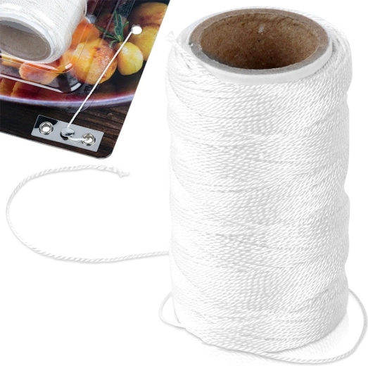 Die Schnur besteht aus starken, hitzebeständigen Fasern und überzeugt durch Widerstandsfähigkeit und Elastizität, sodass sie bei Hitzeeinwirkung weder reißt noch sich verformt. Die lange 60-Meter-Lauflänge reicht für viele Kochprojekte und ist sowohl zu Hause als auch in der Profiküche geschätzt. Die praktische Spule ermöglicht ein einfaches Dosieren und Zuschneiden auf die gewünschte Länge.