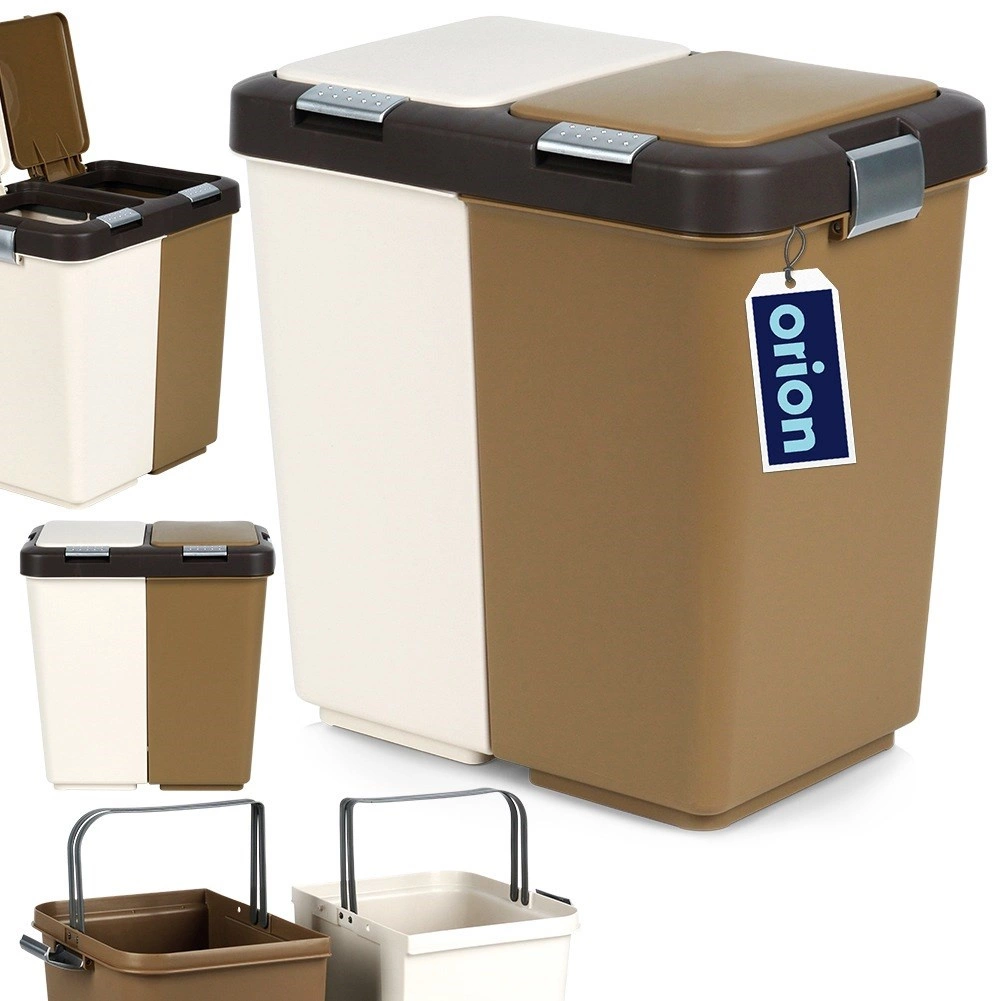Der Doppelkammer-Mülleimer der Marke ORION erleichtert die tägliche Mülltrennung. Zwei nebeneinander angeordnete, getrennte Behälter ermöglichen die übersichtliche Trennung von Kunststoffen, Papier oder Restmüll. Jede Kammer verfügt über einen eigenen Deckel mit praktischem Knopf für schnelles Öffnen – so entsorgen Sie Abfall komfortabel und hygienisch.