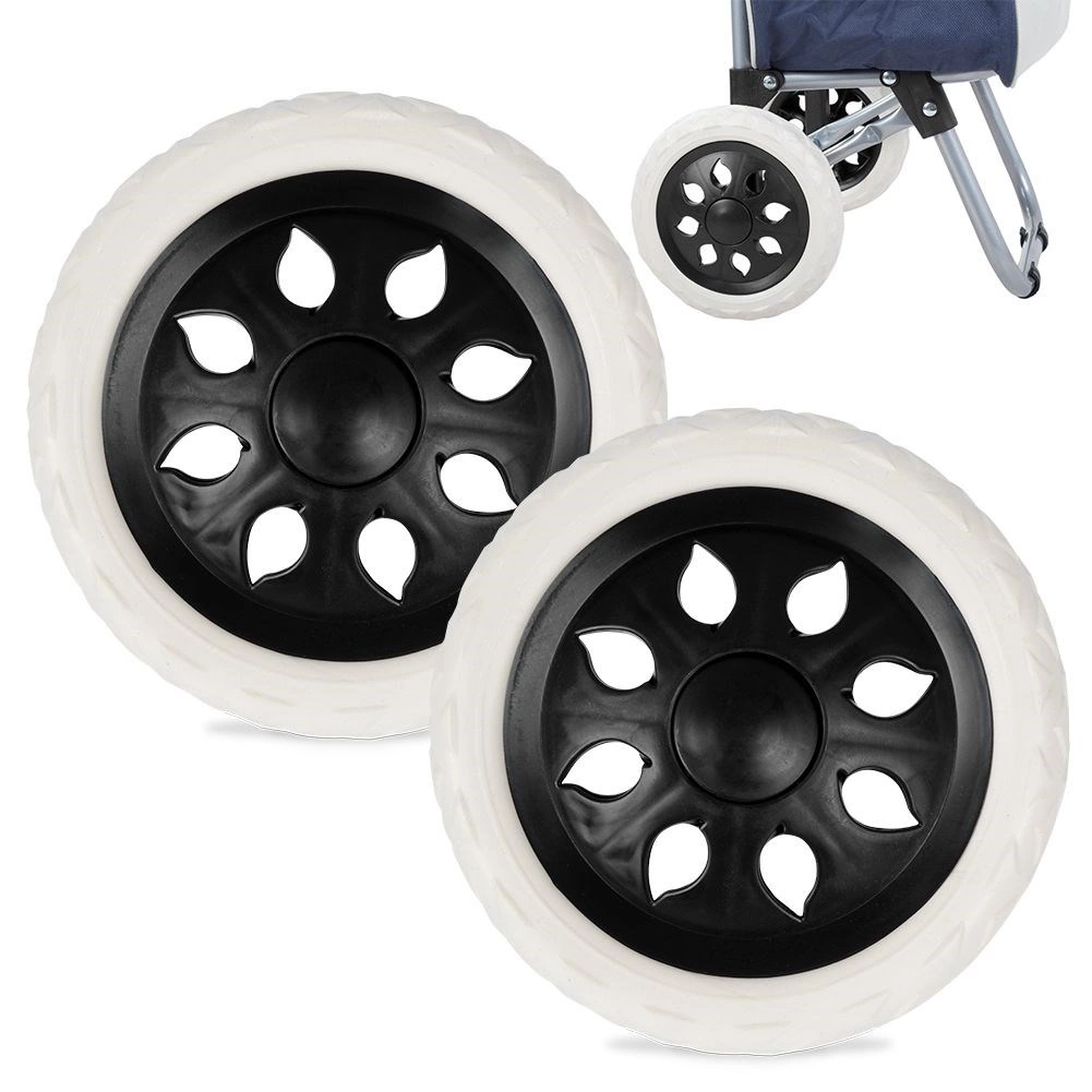 Geben Sie Ihrem Einkaufswagen mit dem Set aus zwei Ersatzrädern einen sanften Lauf zurück. Der hochwertige Kunststoffkern und die profilierte Lauffläche bieten guten Grip sowie leisen, ruhigen Lauf auf verschiedenen Untergründen. Dank des geringen Gewichts erhöht sich das Gesamtgewicht des Wagens nicht unnötig.